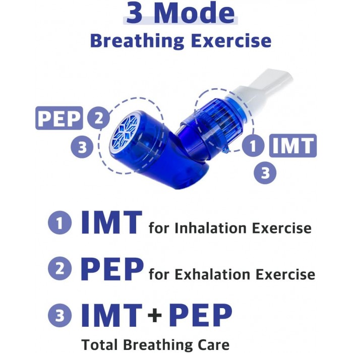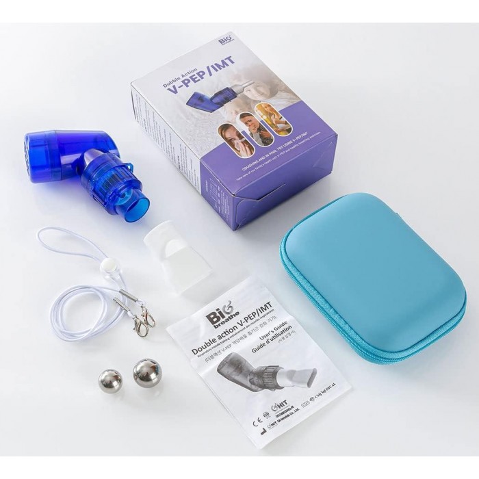 Double Action V-PEP/IMT je dechový trenažér, který pomáhá snadněji odstraňovat hleny a účinně rozšiřuje kapacitu plic. Zvyšuje tloušťku bránice a kapacitu plic prostřednictvím nádechu. Při výdechu pak kulička vložená do přístroje osciluje a tím rozkmitává plíce, takže vám pomáhá vyčistit hrdlo a dobře vyplivnout hleny.