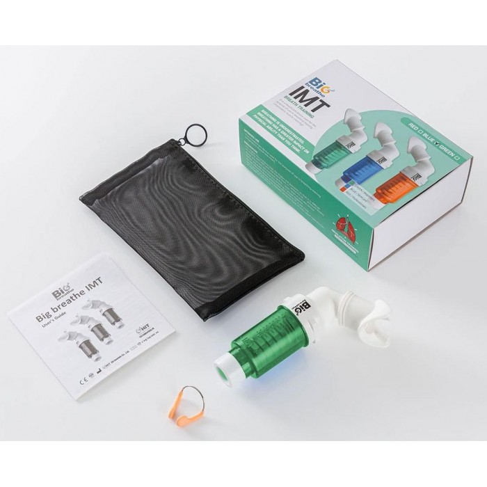 Bigbreathe IMT trenažér dýchacích svalů je zařízení pro trénink dýchání, které zlepšuje vaše nádechové svaly a rozšiřuje kapacitu plic přidáním odporu vzduchu při nádechu.