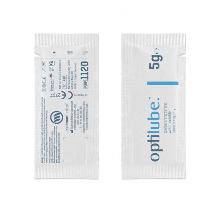 Optilube Sterile Lubricating Jelly 5g sáček je vodou rozpustný lubrikační gel, který se snadno nanáší. Má sterilní a nemastné složení vhodné pro obecné a vaginální lubrikace, gynekologické zákroky, zavádění katétru, digitální a instrumentální vyšetření. Snadno se roztírá a nepoškozuje gumu, kov, přírodní ani syntetické textilie.