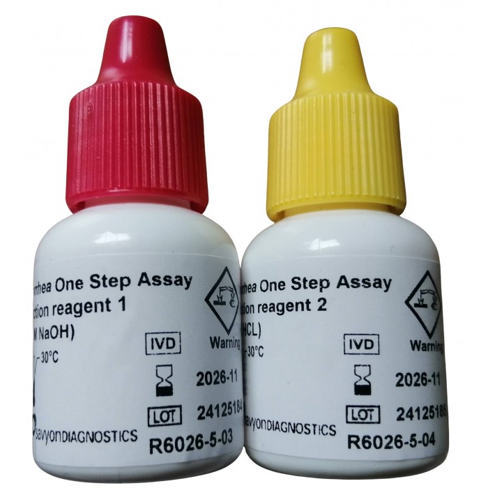 Každá souprava Gonorrhea One-Step Assay obsahuje všechno potřebné k provedení 1 testu.