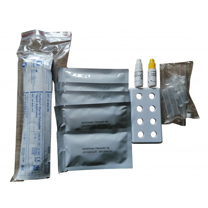 Rychlý, jednoduchý a spolehlivý test k detekci chlamydiové infekce, způsobené Chlamydia trachomatis z výtěru krčku děložního hrdla u žen, výtěru z močové trubice u mužů a očního vzorku u symptomatických pacientů. 5 testů v jednom balení.