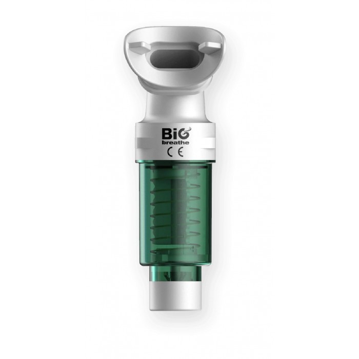 The Bigbreathe IMT is a breathing training device that improves your inspiratory muscles and expands your lung capacity by adding air resistance when you inhale.