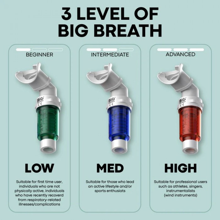 The Bigbreathe IMT is a breathing training device that improves your inspiratory muscles and expands your lung capacity by adding air resistance when you inhale.