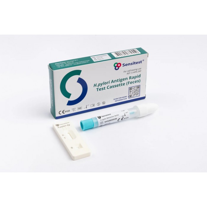 Helicobacter pylori (H. pylori) is one of the most common infections, affecting approximately 50% of the human population. H. pylori infection is a significant factor in dyspeptic syndrome, peptic ulcer disease (stomach and duodenal), gastric cancer, and MALT lymphoma. H. pylori infection can be diagnosed using invasive and non-invasive examination methods. Invasive examination methods include endoscopic examination and rapid urease test, histology, and culture. Non-invasive examination methods include urease breath test and hemocult test. Sensitest stool test for Helicobacter pylori is a rapid, non-invasive, and easy-to-perform test for detecting active H. pylori infection. It can also be used to monitor the effectiveness of treatment and to confirm that the patient is cured after using antibiotics.