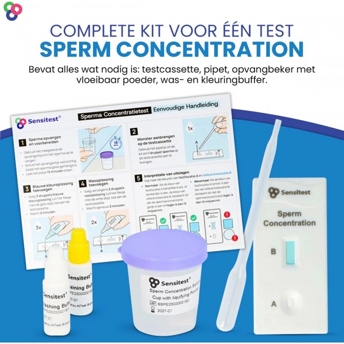 Sensitest SPERM Test is a quick and reliable home test for male fertility. It evaluates the concentration of sperm in ejaculate. Within 10 minutes, the test determines whether the sperm count is within the standard limit for male fertility.