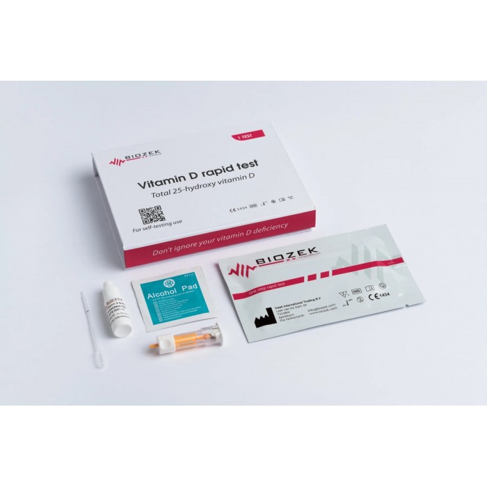 Biozek Vitamin D Self-Test je domáci test na stanovenie hladiny vitamínu D v tele. Stanovenie hladiny sa vykonáva odberom jednej kvapky krvi z končeka prsta. Výsledky sú k dispozícii do 10 minút.
